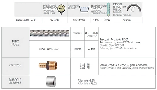 - Female 3/4″ x Female 3/4″ BSP European Thread; length: 70cm;