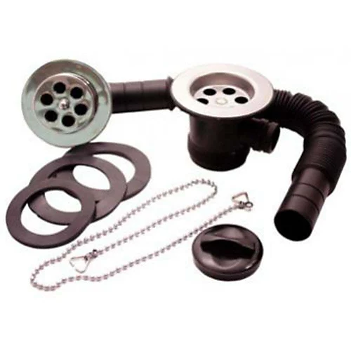 Material: Plastic, Steel. Width: 1.5in. Contents: Chain, Plug, Seals. Suitable for: Plumbing.