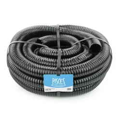 Strong and Flexible black corrugated hose in a 10 Metre Roll The corrugation in the hose gives it strength and flexibility, allowing you to turn tight corners without it kinking. Being black makes for easy concealment and discourages algae growth on the inner walls. 10 Metre roll of 50mm diameter