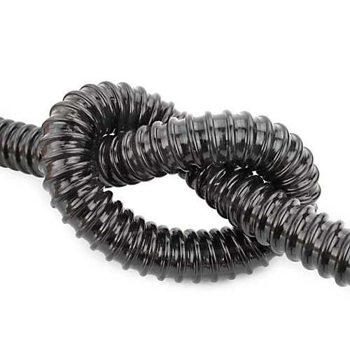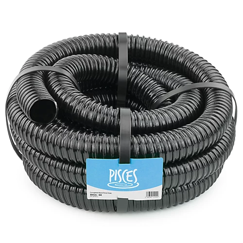 Strong and Flexible black corrugated hose in a 5 Metre Roll The corrugation in the hose gives it strength and flexibility, allowing you to turn tight corners without it kinking. Being black makes for easy concealment and discourages algae growth on the inner walls. 5 Metre roll of 50mm diameter