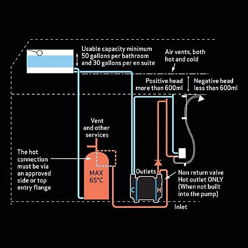 This pump will quietly and efficiently boost the hot or cold water supplies to showers, baths, basins, toilets and household appliances. They are suitable across a wide range of shower types and heads, single and mixer taps and will refill your toilet cistern in double quick time.